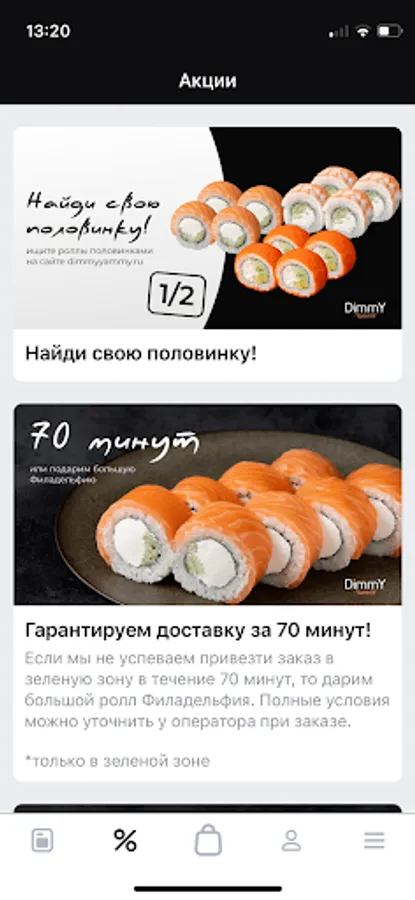 Always at hand, in the application - order history, our promotions. We will remember your delivery addresses, re-registration will be even easier and faster!