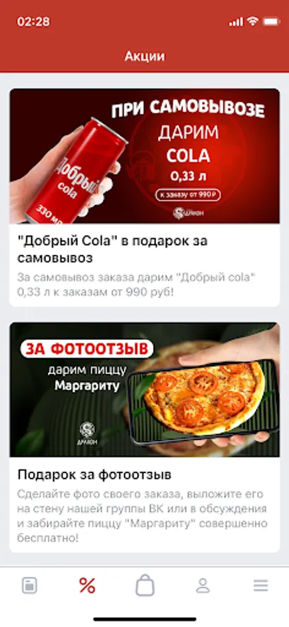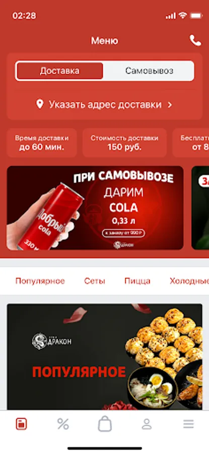 Always at hand, in the application - order history, our promotions. We will remember your delivery addresses, re-issuing will be even easier and faster!