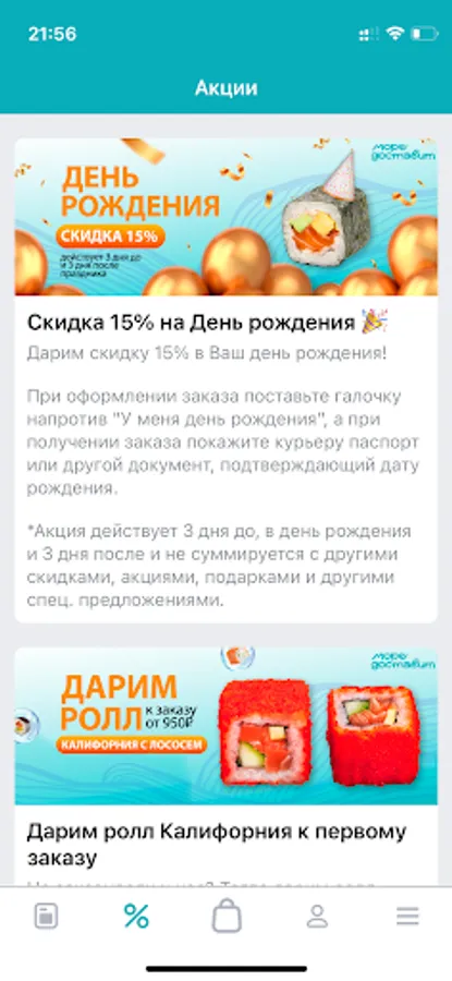 Always at hand, in the application - order history, our promotions. We will remember your delivery addresses, re-issuing will be even easier and faster!