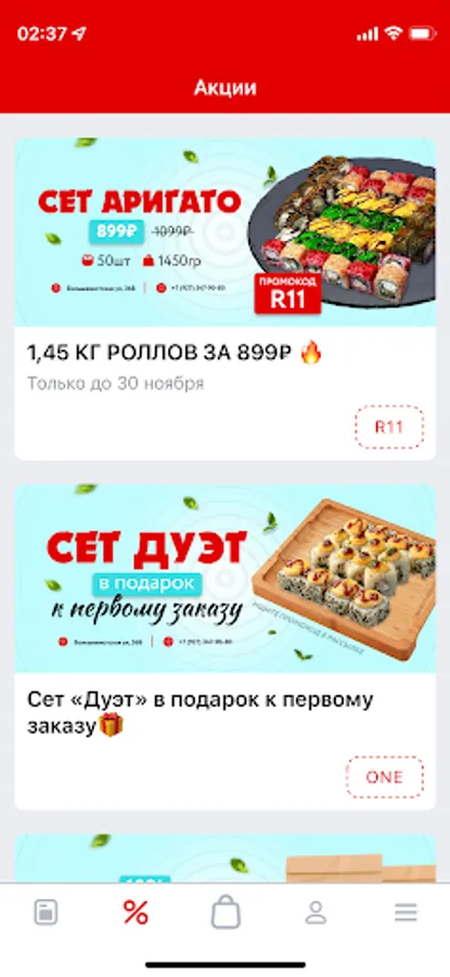 Always at hand, in the application - order history, our promotions. We will remember your delivery addresses, re-issuing will be even easier and faster!