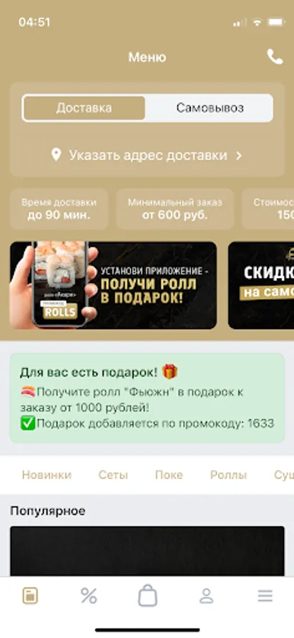Always at hand, in the application - order history, our promotions. We will remember your delivery addresses, re-issuing will be even easier and faster!
