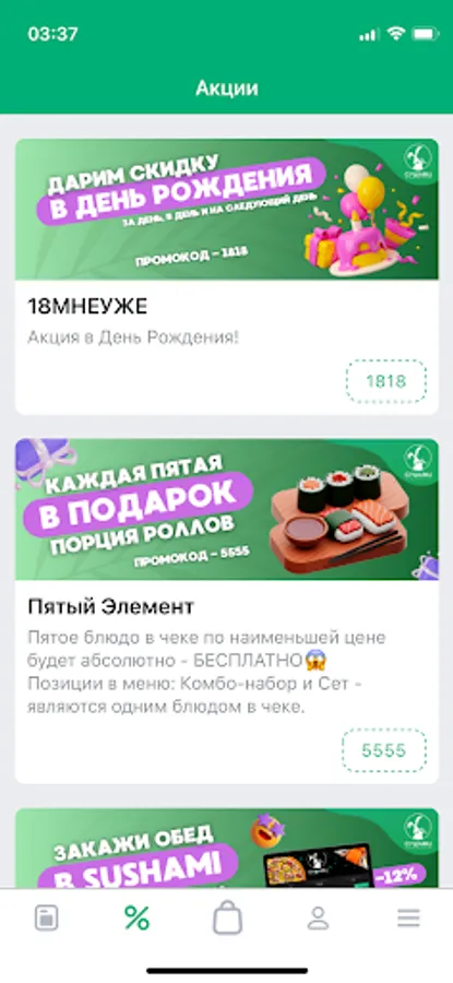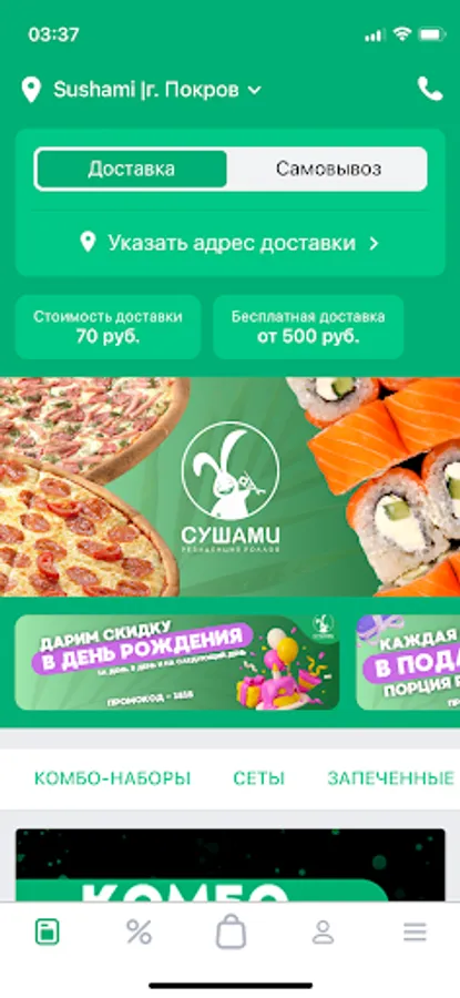 Always at hand, in the application - order history, our promotions. We will remember your delivery addresses, re-issuing will be even easier and faster!