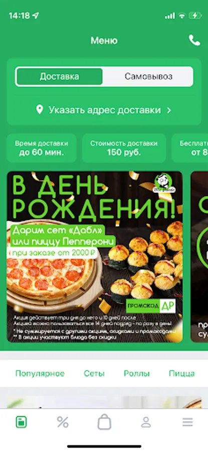 Always at hand, in the application - order history, our promotions. We will remember your delivery addresses, re-issuing will be even easier and faster!