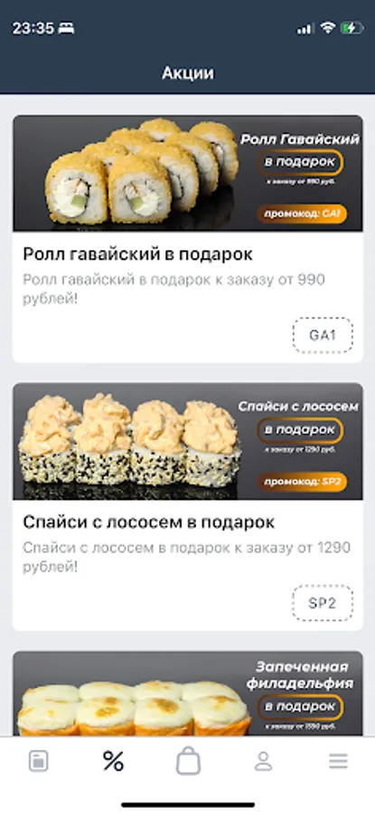 Always at hand, in the application - order history, our promotions. We will remember your delivery addresses, re-issuing will be even easier and faster!