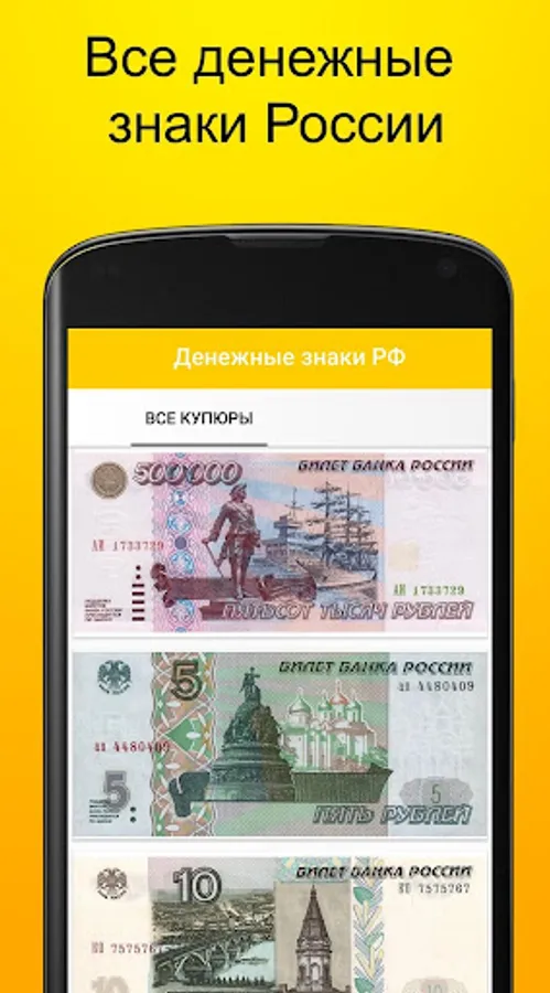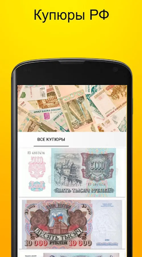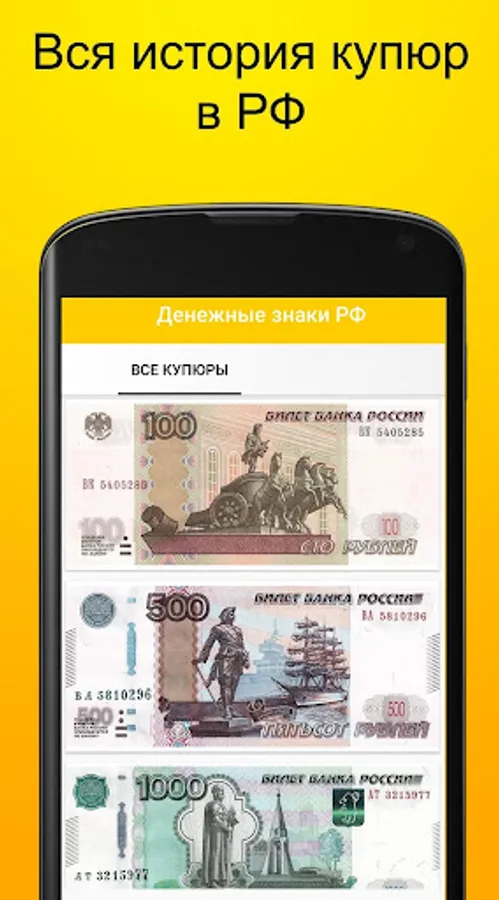 The application is a reference to the currency of the Russian Federation, presented both sides of bills.