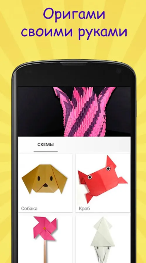 Many children love to do some things with their hands. It can be a variety of crafts, drawings or origami. It is the last kind of art we decided to devote this application. Next, you are waiting for the scheme of origami, which for a long time will take you and your child.