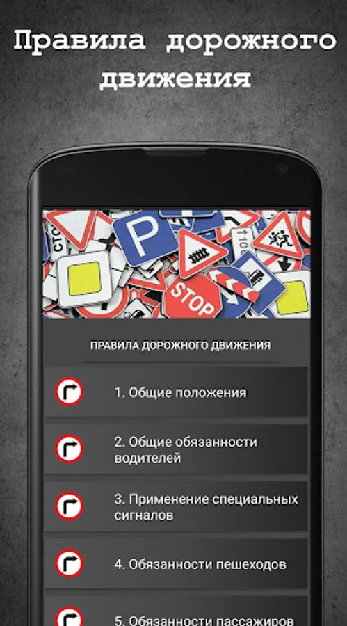 - View the text of the law and articles of the Rules of the road, in the form of convenient scrolling sections
