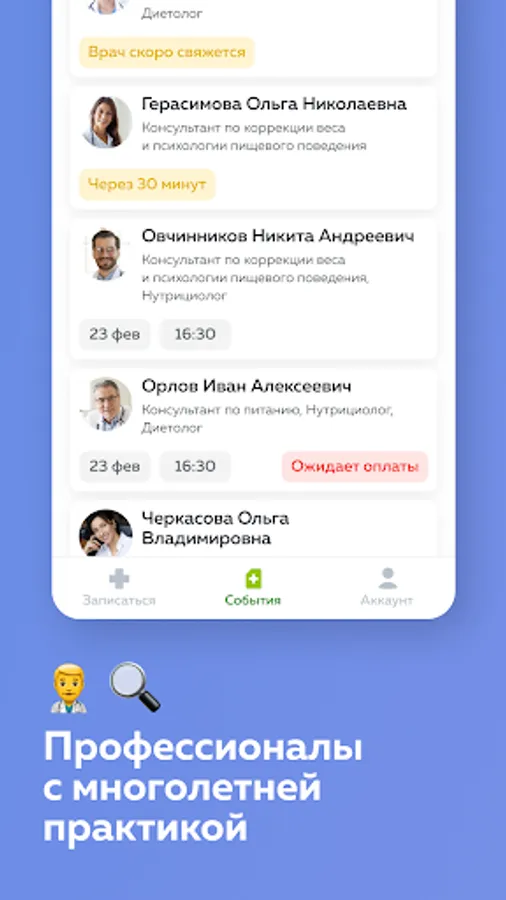 FoodFessional nutritionists in telemedicine format will help you maintain a healthy diet without the extra nerves, stress and depression caused by constant self-restraint. All our specialists - "Doctor Komarovsky" from medicine - take into account the personal characteristics of patients: for someone it is important to stay within the Kremlin diet or use exclusively vegetarian diets with a maximum of vegetables, for girls it may be the desire for a thin waist and a flat stomach without depriving oneself of sweets , or striving for an ideal body in a minimum of time: lose weight, remove the belly or get rid of 10 kilograms in a week.