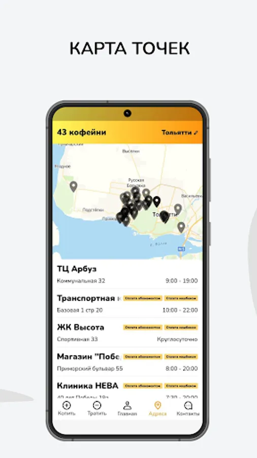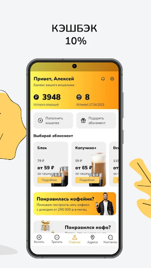 - spend the accumulated cash back on purchases in the Dobry Kofe self-service coffee shop chain