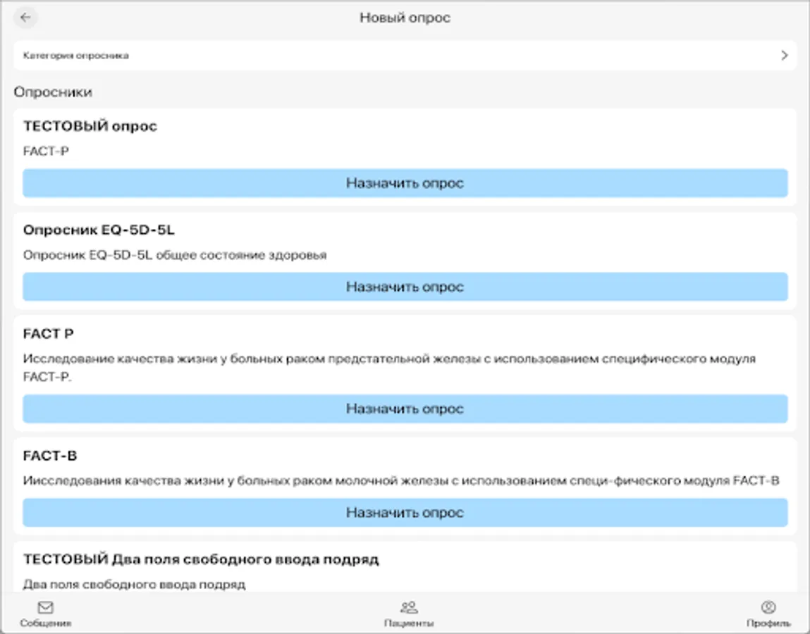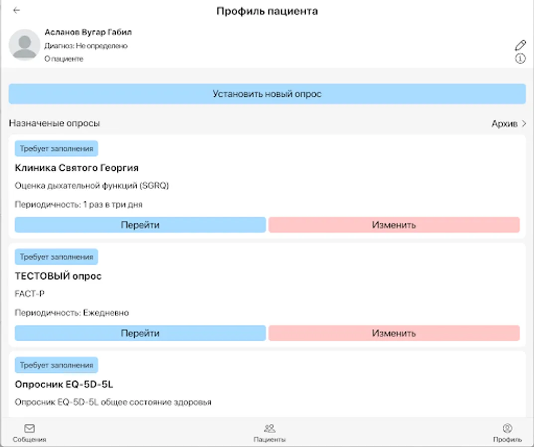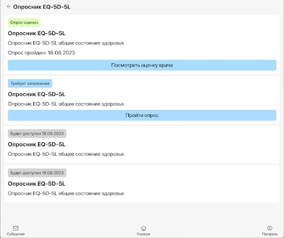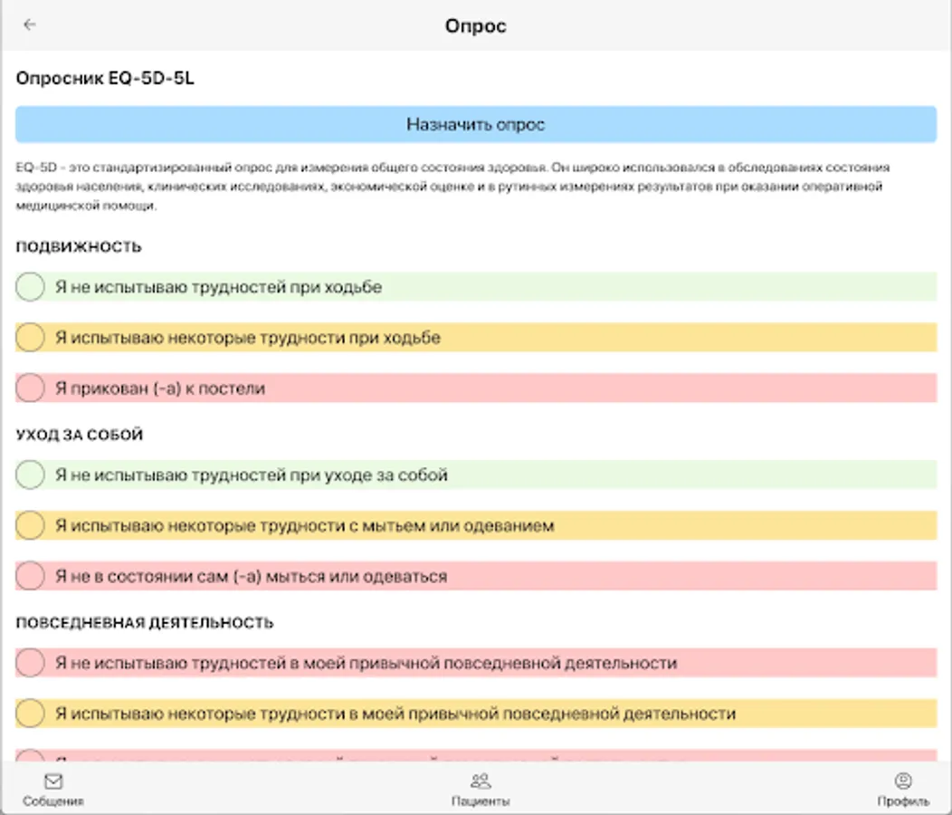 Specialized medical surveys are a globally recognized tool for remote monitoring of a patient's condition. With the help of medical surveys, the attending physician has the opportunity to track changes in the patient's condition between visits to the clinic, as well as change the patient's management tactics depending on the dynamics of the course of the disease.