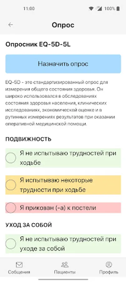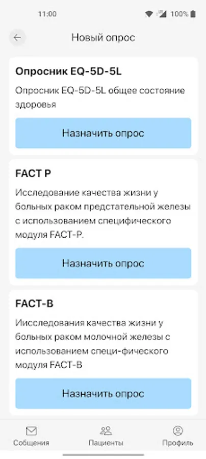 The DocContact application is used to organize medical surveys assigned to a patient. It allows you to easily track changes in patient responses, as well as maintain two-way patient-physician communication. The doctor can create his own unique survey, or use one of the ready-made options.