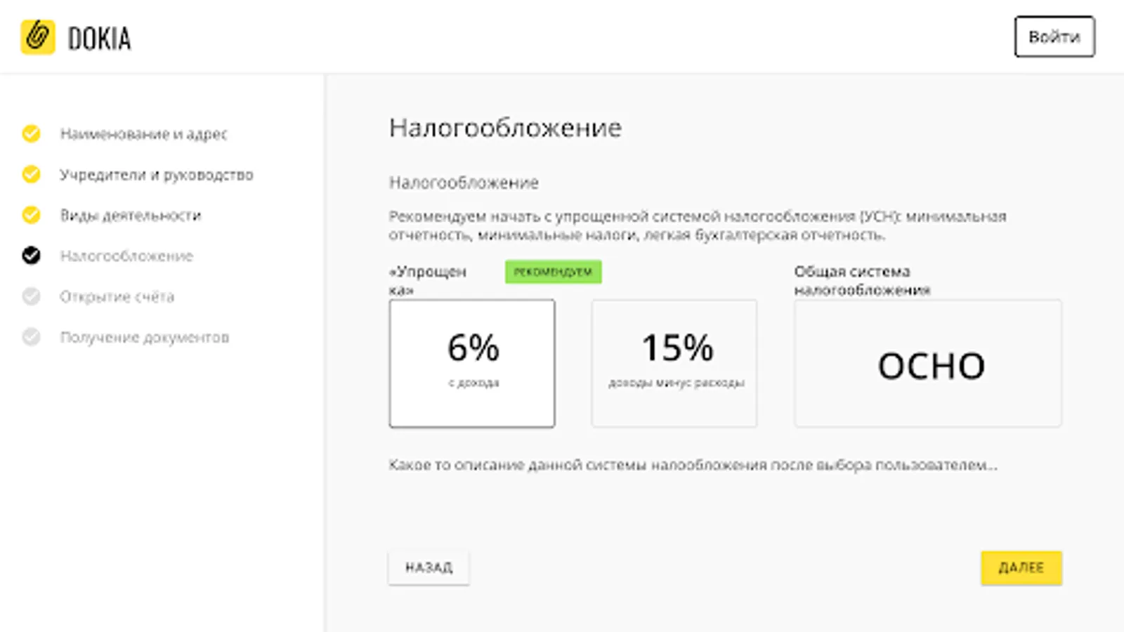 5 minutes and documents for filing with the tax office are in your hands. There is no need to wait for the issuance of an EDS, the documents can be immediately taken to the tax office.