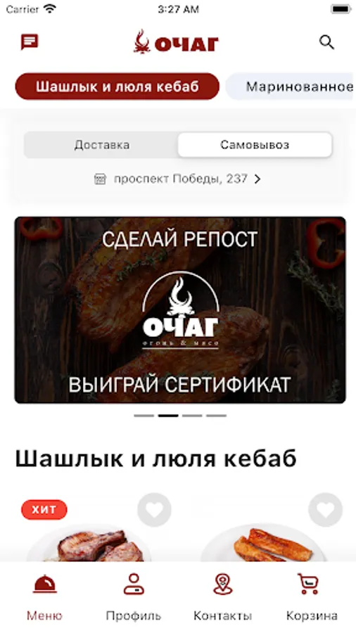 Delivery of your favorite dishes from the restaurant "Ochag".