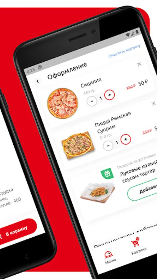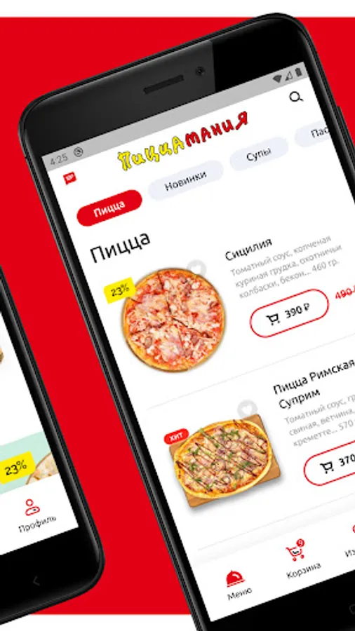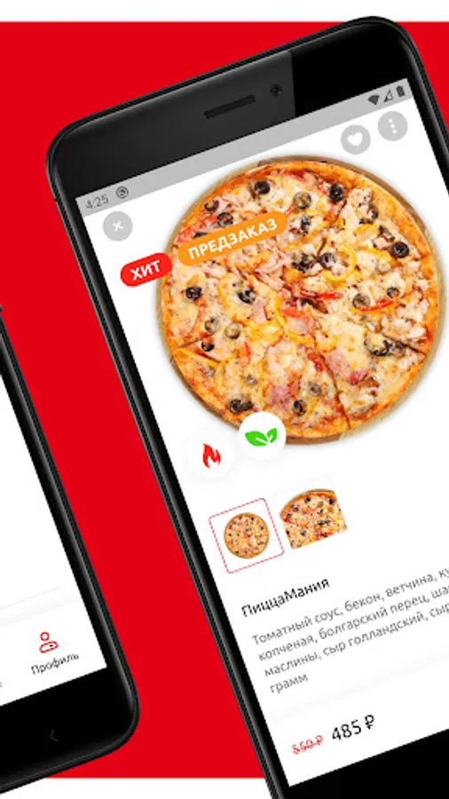 Now you can order pizza in Chelyabinsk and Kopeisk in a couple of clicks. Order in the app: choose the dish you like and the number of servings, put the desired one in the basket. Choose a convenient way of receiving - self-pickup or ordering pizza at home. There are three pick-up points available for your convenience. Delicious pizza to order with delivery is already on its way to you!