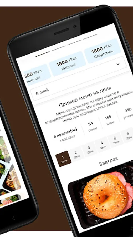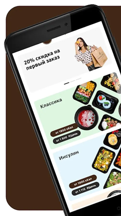 In the application, you can choose a diet according to your preferences and tasks, count calories, choose a convenient delivery time.