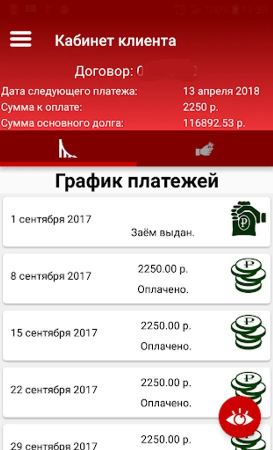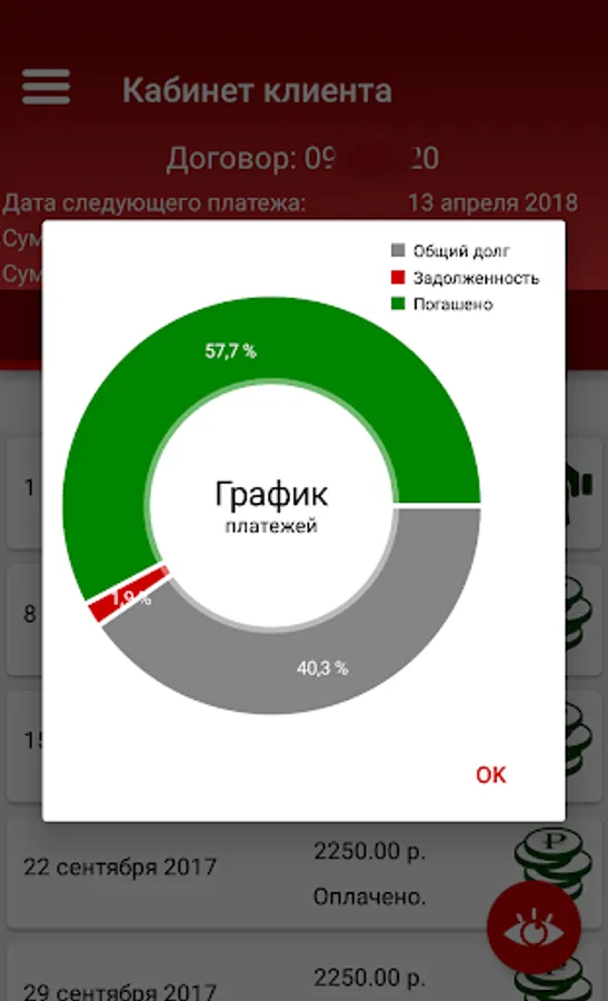 Conducts payment history on the server allows you to analyze the schedule of payments under the contract.