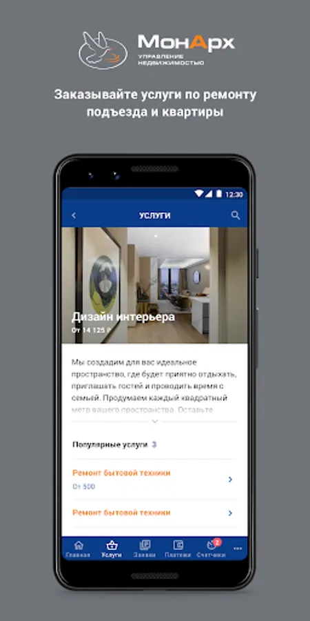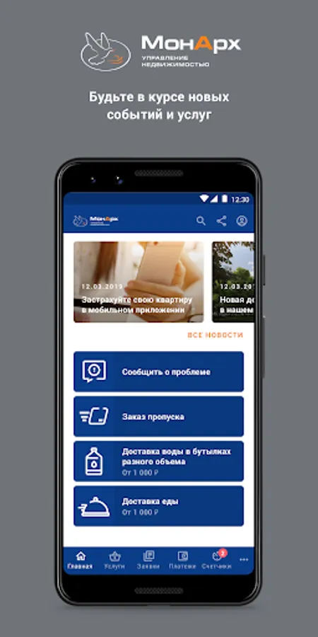 Monarch service - is a mobile application management company for communication with residents. Information about the management of the company, its news service, paying bills, viewing meter readings - all this and much more directly from your mobile device's screen.