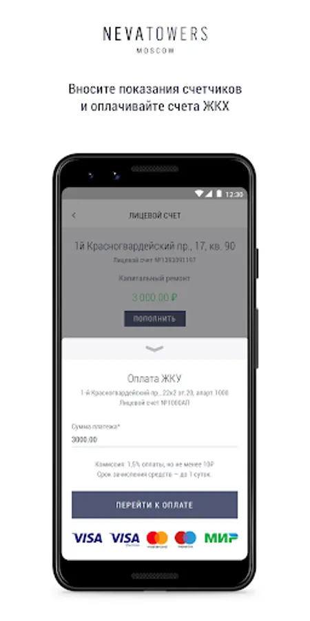 If you do not have a personal account, to register in the mobile application, contact the Client Relations Department of the Neva Towers MFC by phone +7 495 787 2424