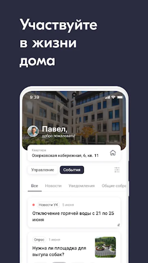 With the help of a mobile application, you can send any applications, pay bills, take part in general meetings of owners.