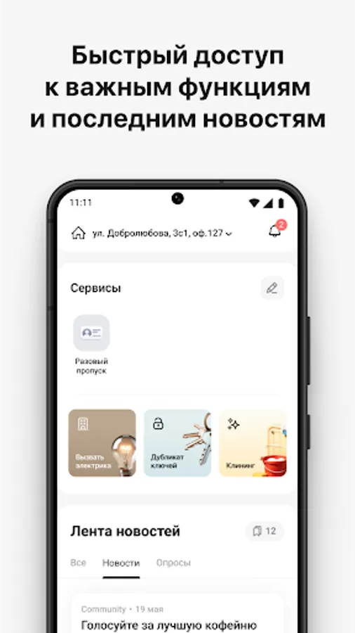 The application allows you to conveniently interact with the management company, receive current notifications, pay bills and monitor the condition of the property — without calls and queues.