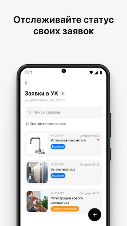 * Send requests to the management company, track their status and receive notifications about their completion;