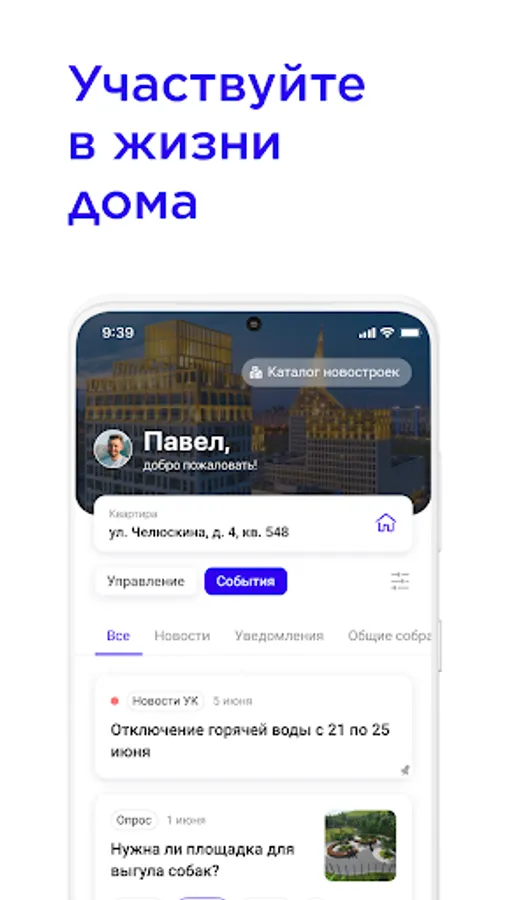 Communicate with your neighbors, order additional services, be in touch with the management company and the developer without leaving your home.