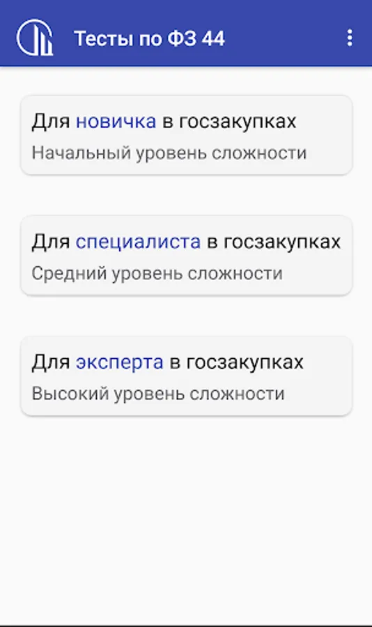 Our tests include levels of "beginner", "specialist" and "expert" in the field of procurement. Identify who you are, and perfection on.