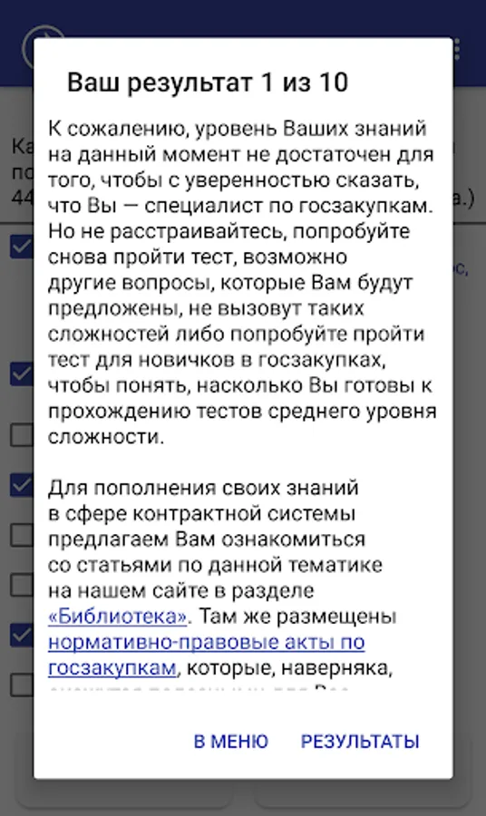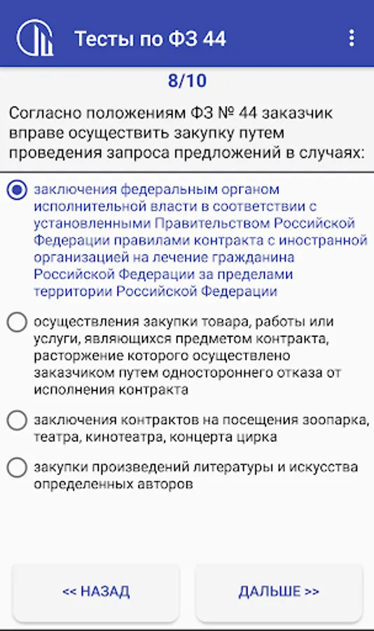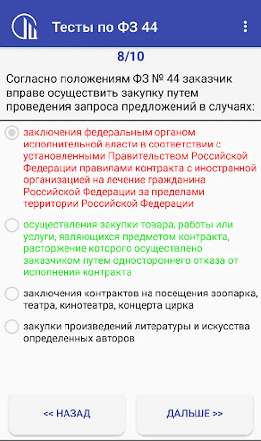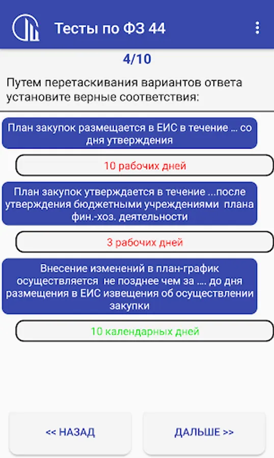 Upon completion of the test, you can see your results and the correct answer. Also, after passing the test on public procurement, we will give detailed advice on which direction you need to move on to safely be called an expert in the field of procurement.