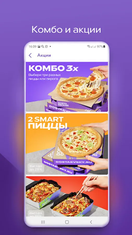 ⭐ A large selection of profitable offers in the form of combos, sets, promotions and a special bonus when ordering through a mobile application.