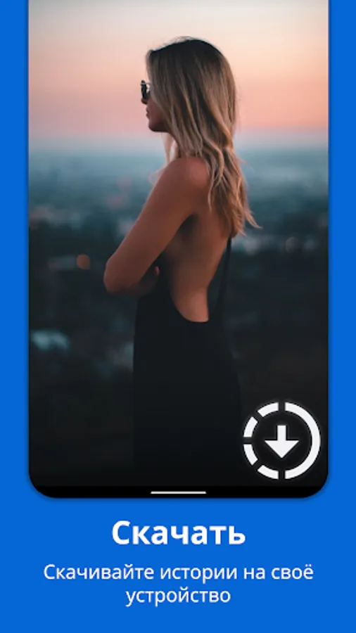In order to download the history you need to go through the authorization in the contact, select the necessary history in the list of available ones or find the user’s link by clicking on the link in the corresponding field. After that, a story carousel opens, where you can select the one you need and click the Download button (shown as an arrow at the bottom of the screen).