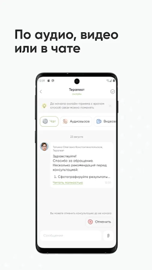 It is convenient when you do not need to re-tell about your "sores". And if you still need it, our chat bot in a mobile application will help with this and the history will be saved in your medical record