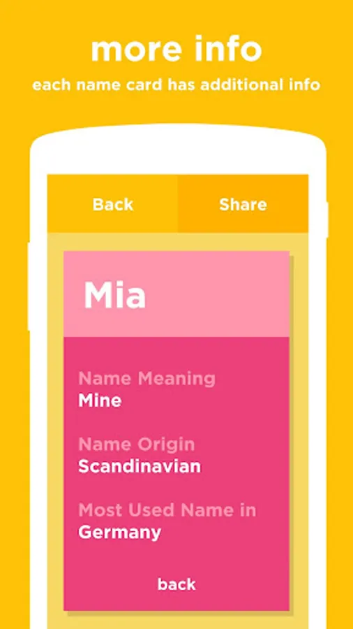 With our new feature, you can add potential names to the app without your partner knowing and receive honest feedback on them. Simply enter the name, choose a gender, and add a meaning. Your partner will see the name within their next 10 swipes, and they can swipe left or right to indicate whether they like it or not.