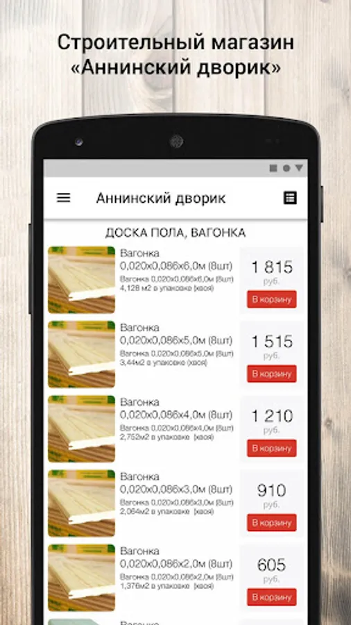 The application is a convenient and quick way to order online. In our assortment you will find everything for construction and repair. With the help of subgroups you can quickly select the product you are interested in: edged material, lining, floor board, insulation, brick, mixes, plumbing, roofing, etc.