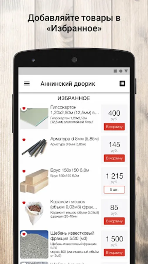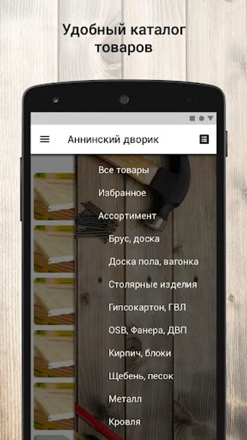 An application for convenient and quick online ordering of building and decoration materials for the construction and repair of your home or apartment.