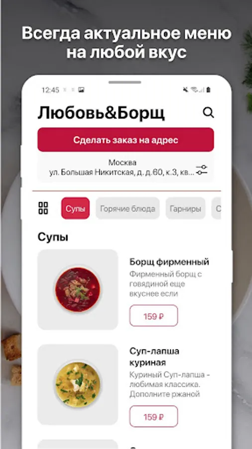 The culinary menu "Lyubov & Borshch" includes home-cooked dishes familiar to everyone since childhood. We have collected the best recipes from all over Russia, diluted them with chef's signature dishes, as well as homemade pastries and desserts made from natural ingredients.