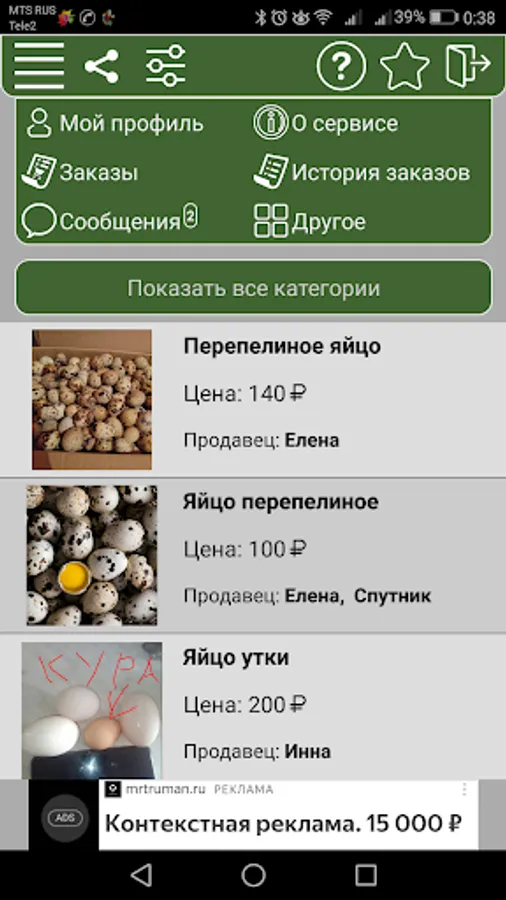 "Vegetables, Fruits, Berry, Mushrooms, Honey, Homemade pickles, Poultry, Bird eggs, Bird meat, Pets, Animal meat, Meat products, Homemade convenience foods,