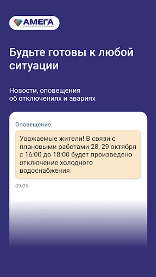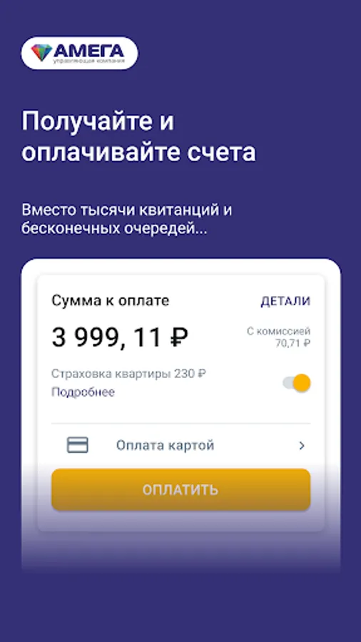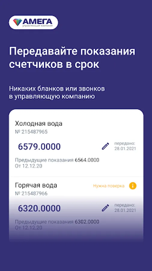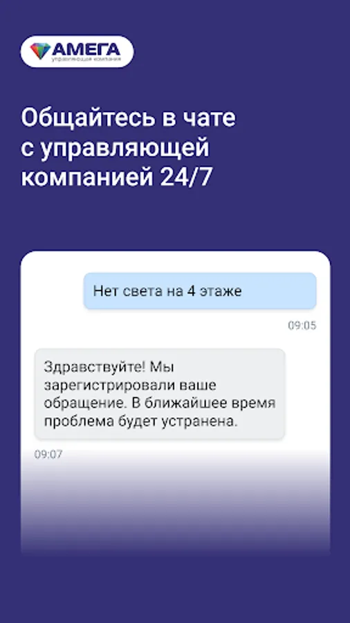 The mobile application of the management company "Amega" is a property management tool for residents and owners of premises for doing business.