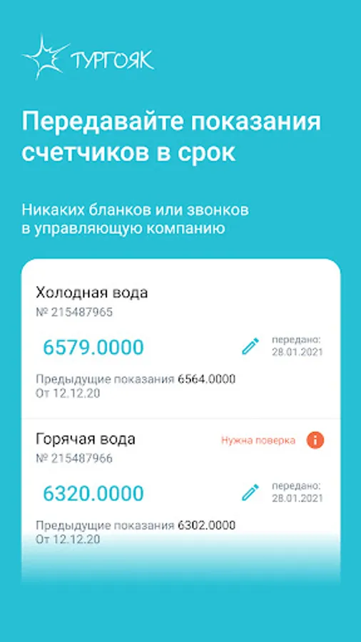 on-line transfer of individual readings of meters for hot, cold-water supply and electricity;