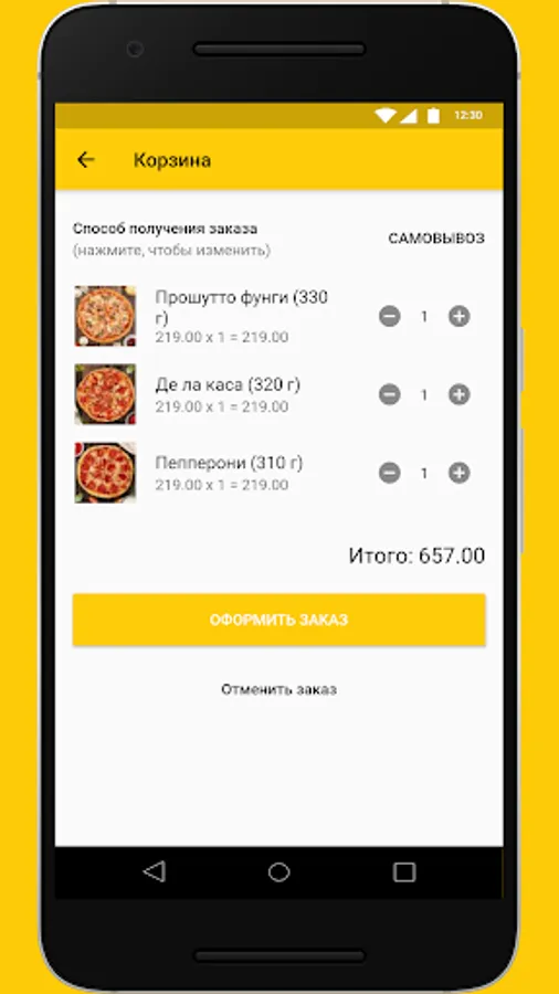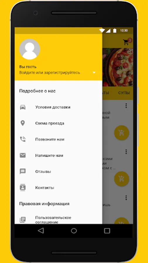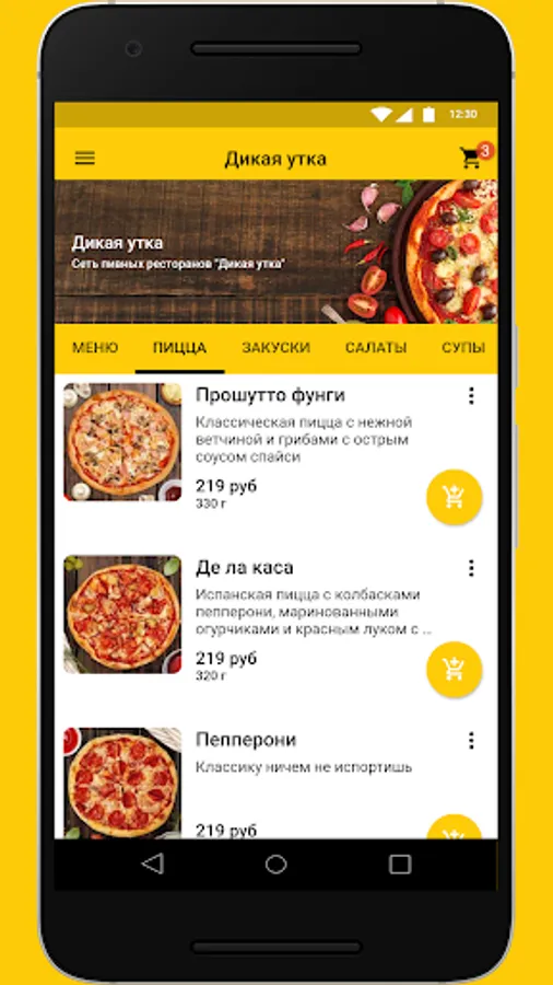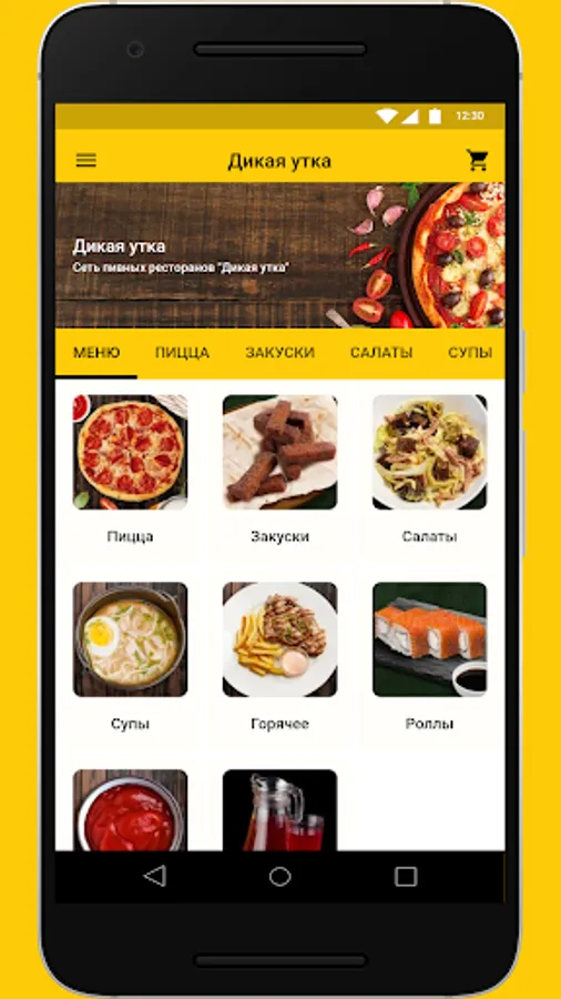 An application of the Wild Duck beer restaurant chain in which you can order delivery of pizza, rolls and other snacks.