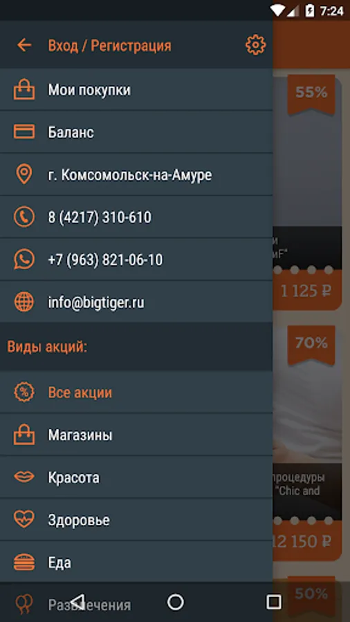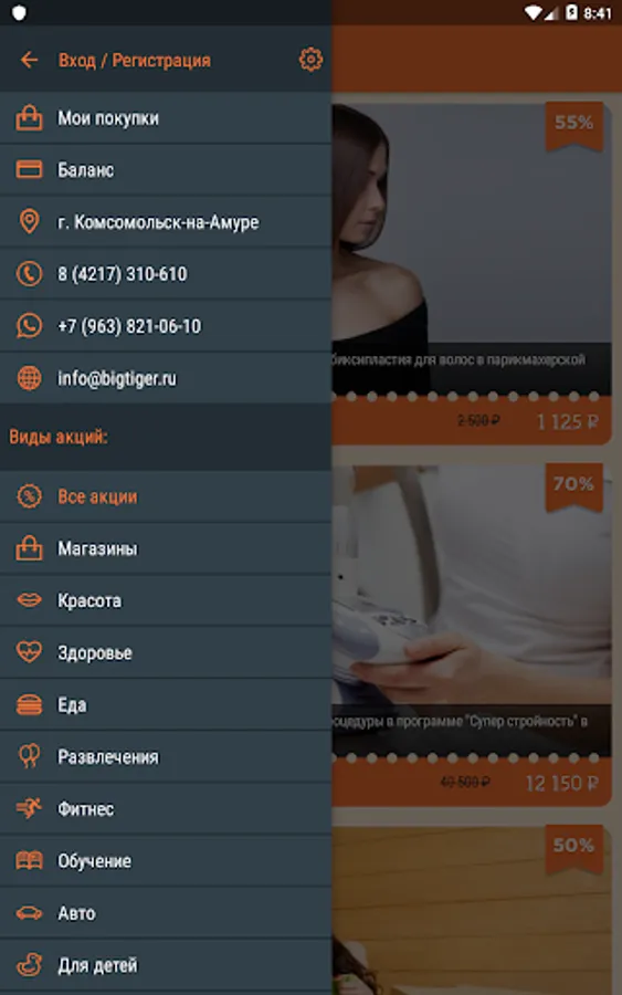 BigTiger.ru - first coupon service in Komsomolsk-on-Amur. We offer the most popular and demanded services and goods in the city at a discount of up to 95%.