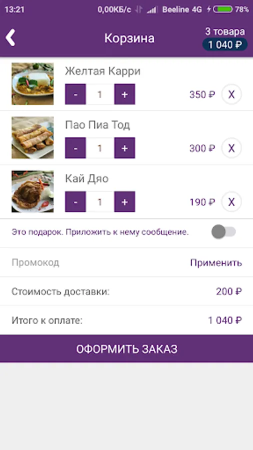 For cooking we use fresh and quality products. Cooking with lots of herbs, vegetables, fruit - green papaya, kulantro, galangal, lemongrass, Monino Gloria, lime leaves - naturally authentic. And we use the gentle way of heat treatment, such as stir frying technology (fast roasting), so that our dishes are low-calorie and healthy.