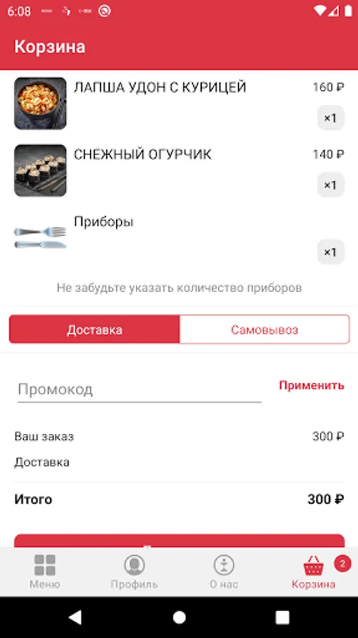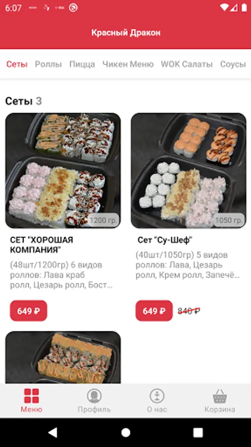 In our application, you can order the delivery of sushi and rolls in Yekaterinburg. For two or larger groups, our chefs offer a variety of sets. You can add delicious sauces to your order. Also, our chefs can prepare hearty noodles (udon or funchose). In addition to Japanese cuisine, you can order pizza, salads and an extensive chicken menu.