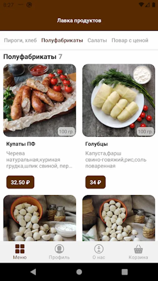 Here you can order home-cooked food, hot dishes of meat, poultry, fish, various side dishes, salads, hot and cold snacks, as well as fragrant pastries, pies and a wedding loaf.
