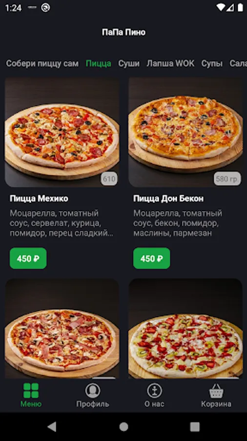 Dad Pino! Hot pizza! Fresh sushi! Fragrant wok! And all in one place with delivery in your city or area!
