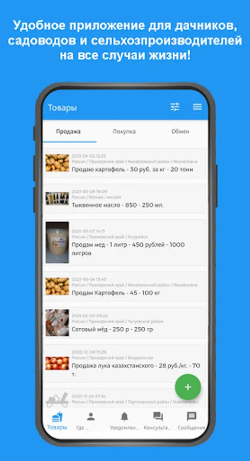 Users can place various orders for the purchase and sale of agricultural products, communicate with each other, and receive notifications from government agencies and consultations from service partners.