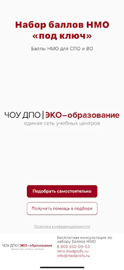 Users of the application can at any time contact the consultants of the unified network of training centers "ECO-education" for help in completing the selected courses, as well as preparing for periodic accreditation.