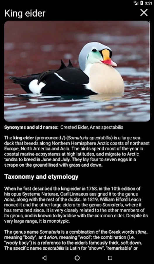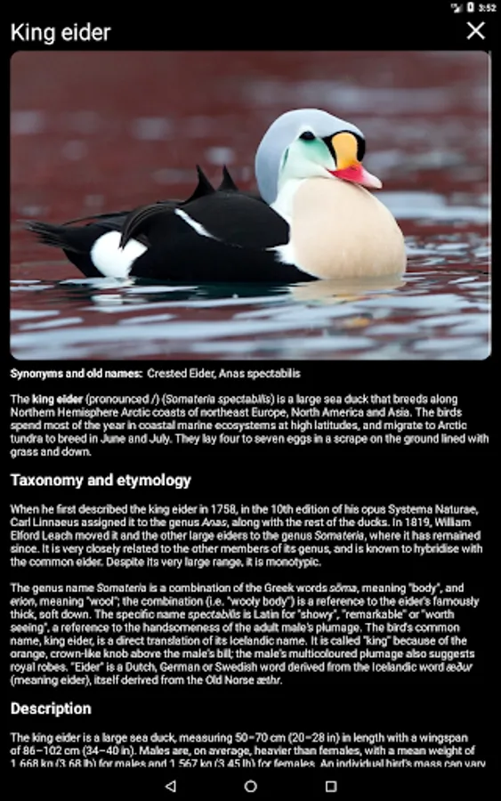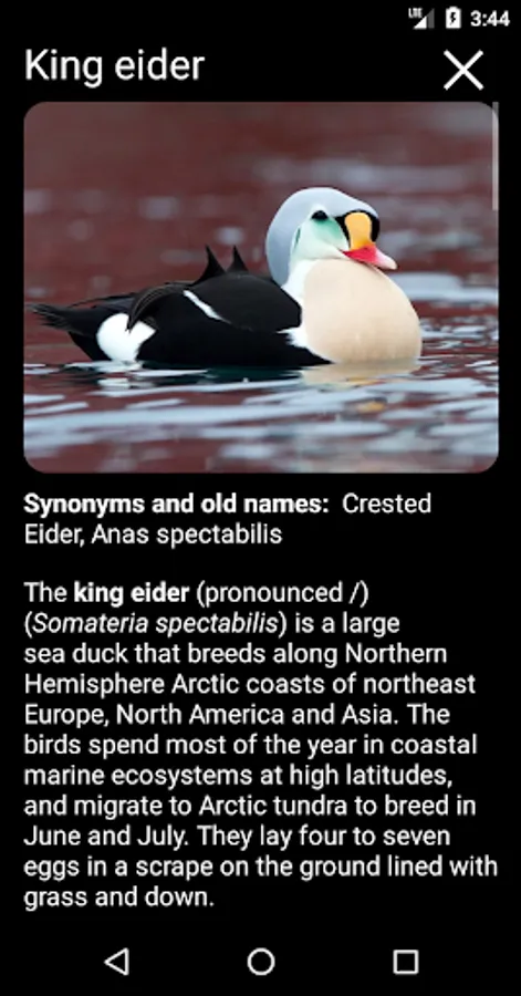 For each species, a photo of the bird in nature is given (the image can be enlarged), as well as a text description of the appearance, behavior, features of reproduction and feeding, distribution and migrations.