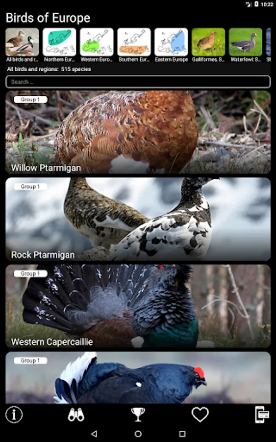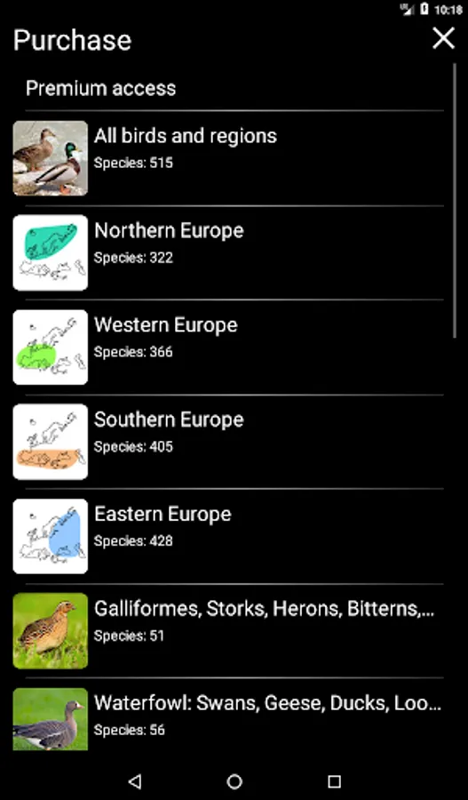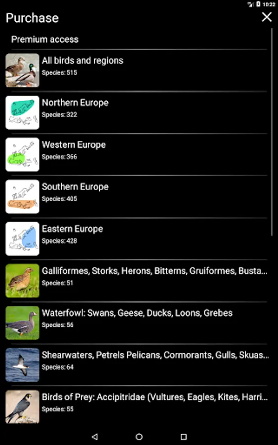 Professional Field Guide (Bird Identifier) for 515 bird species inhabiting Europe - from the Atlantic Ocean to the Urals, and from the Arctic Ocean to the Mediterranean Sea. The list of bird species included in the app can be viewed at http://ecosystema.ru/eng/apps/21birds_eu.htm