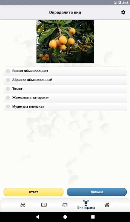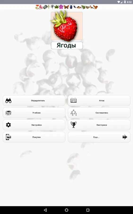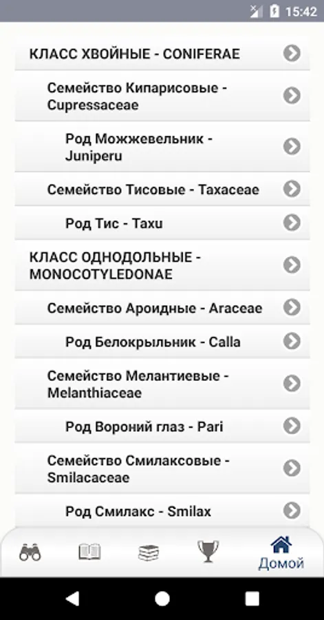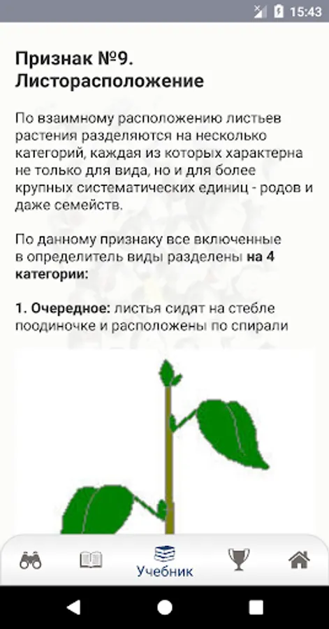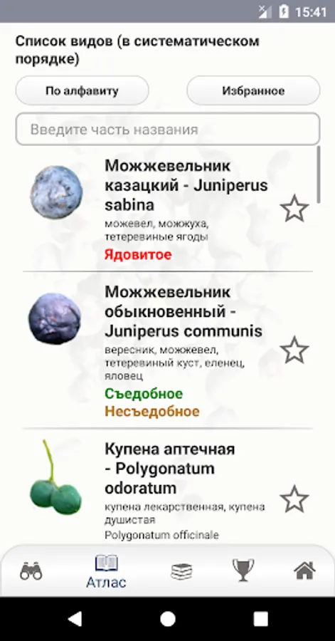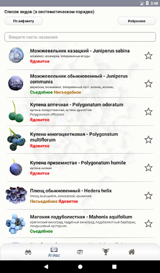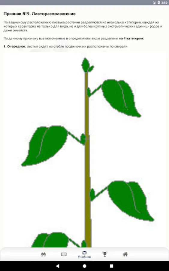 Application consists from 5 main parts: Guide, Atlas, Manual, Systematic Tree (with class, family and genus descriptions) and Quiz.