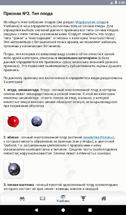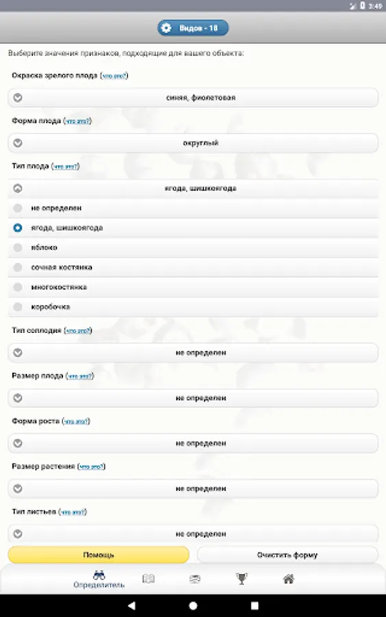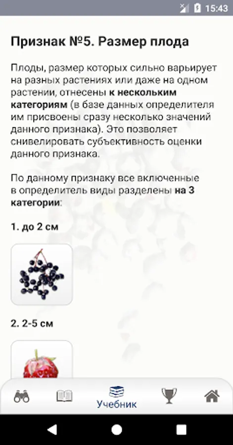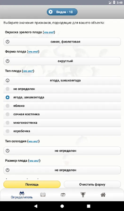 Unique, first in Russia FIELD mobile guide to wild fruits and berries of Northern Eurasia: 123 most prevalent species, each with images of fruits and plant appearance, typical identification features, text description, chemical composition, food and medicinal properties and cultivation. For food and medicinal plants, recipes for cooking jams, drinks, tinctures and medicines are provided. It is easy and fun to identify species using 13 determination morphological characters with 3-8 values in each of them.